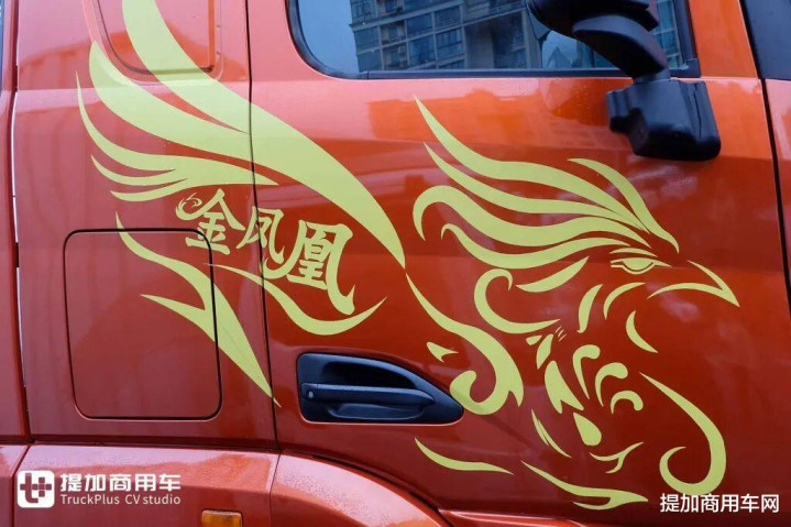 驾驶室侧面设计了以“金凤凰”为核心设计元素的拉花,既增强了整车外观效果,同时也强调了车辆的自身辨识度