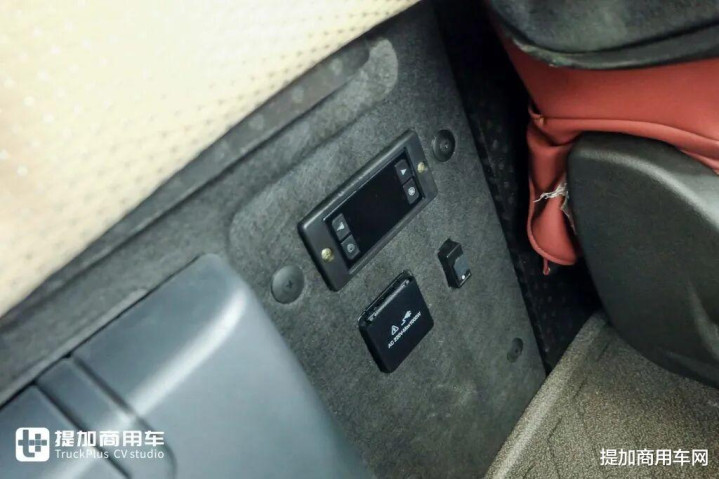 卧铺下方配备了220V/1000W的电源插座,结合原车逆变器,驾驶员可以安全便捷地使用小型电饭锅、烧水壶等生活电器,在长途路上也能轻松吃上热饭、喝上热水,显著改善了长途行车的生活体验。