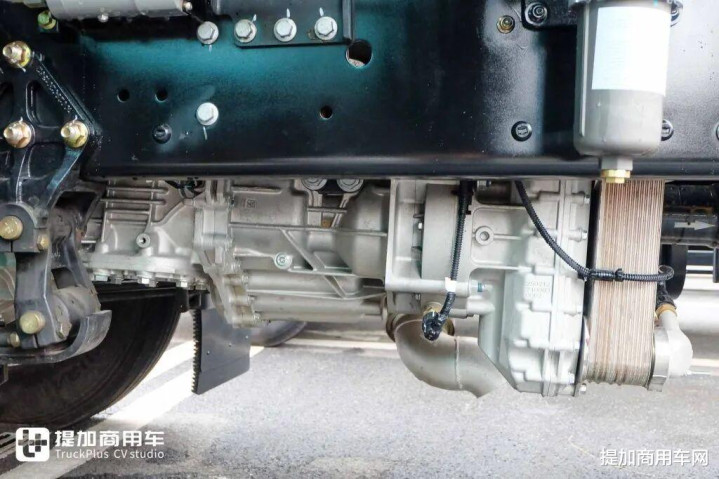 俗话说好马配好鞍。与这台大马力发动机相匹配的,是康明斯伊顿赢动AMT变速箱。二者通过深度协同标定,形成了一体化动力链,实现了“1+1>2”的效能飞跃。这套动力总成不仅换挡迅捷、传动效率高,其全铝壳体设计更带来了可观的轻量化收益。并且实拍车辆还采用了液力缓速器,能够帮助车辆控制车速,提升长下坡、重载等工况下的安全性,同时减少车辆刹车系统的磨损,进一步保障运营安全与经济效益。